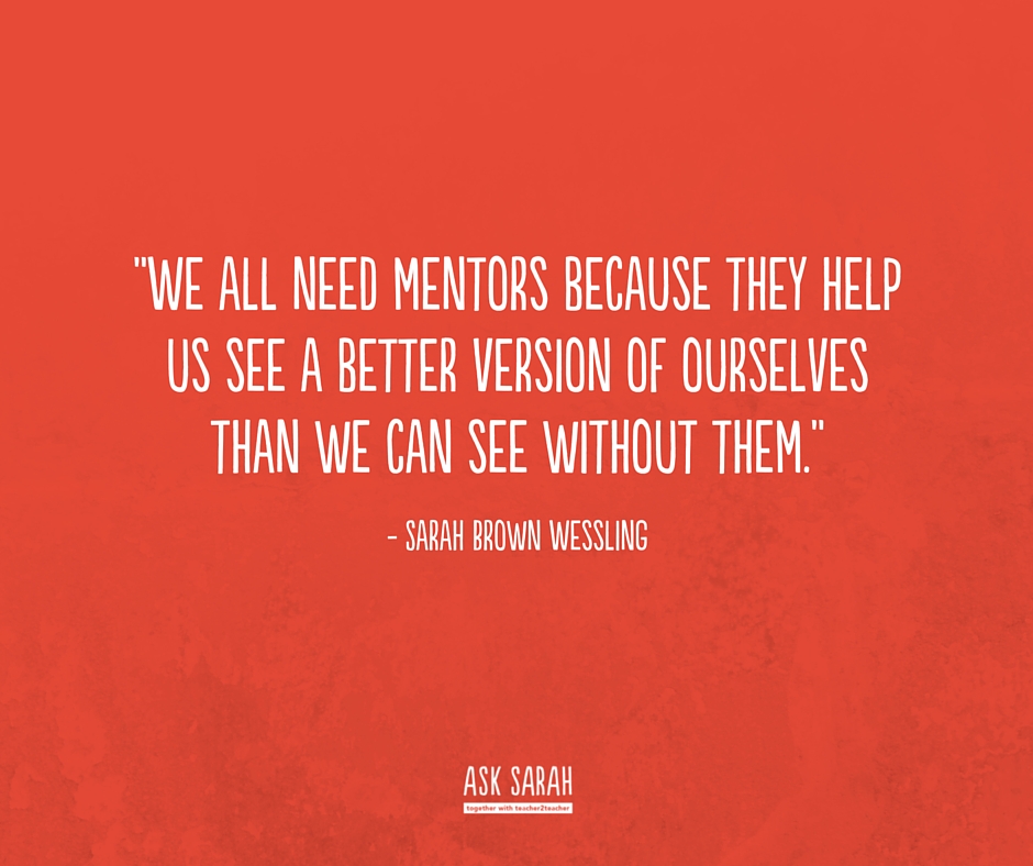 I’m intrigued by your question because it makes me think a lot about where I started 18 years ago. I was determined and energetic, equipped with a fantastic teacher preparation program, and still full of fear and uncertainty. I had wonderful days in my first year where students wrote boldly and spoke passionately. I also had days that were desolate and left me questioning my ability to be effective in a classroom. Perhaps not surprisingly, it was never an afternoon of professional development or a fantastic new strategy that got me through the tough days. It was always a person. It was Susan, the veteran teacher who embraced her own tough days transparently with me. It was Donna, my professor who kept encouraging me from afar. It was the people in my professional organizations who listened to my neophyte tribulations with gentle reassurance and compassionate advice.