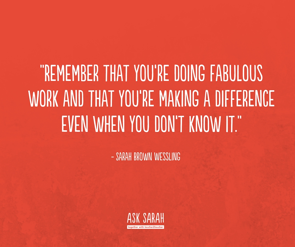 Dear Sarah, I have all of this self-doubt about myself as a teacher. I don’t know if I’m doing anything right. I look at my colleagues and it seems so easy. They always seem successful. How do I fight this? Sincerely, Doubt Creeps In Dear Doubt Creeps In, Doubt is a...
