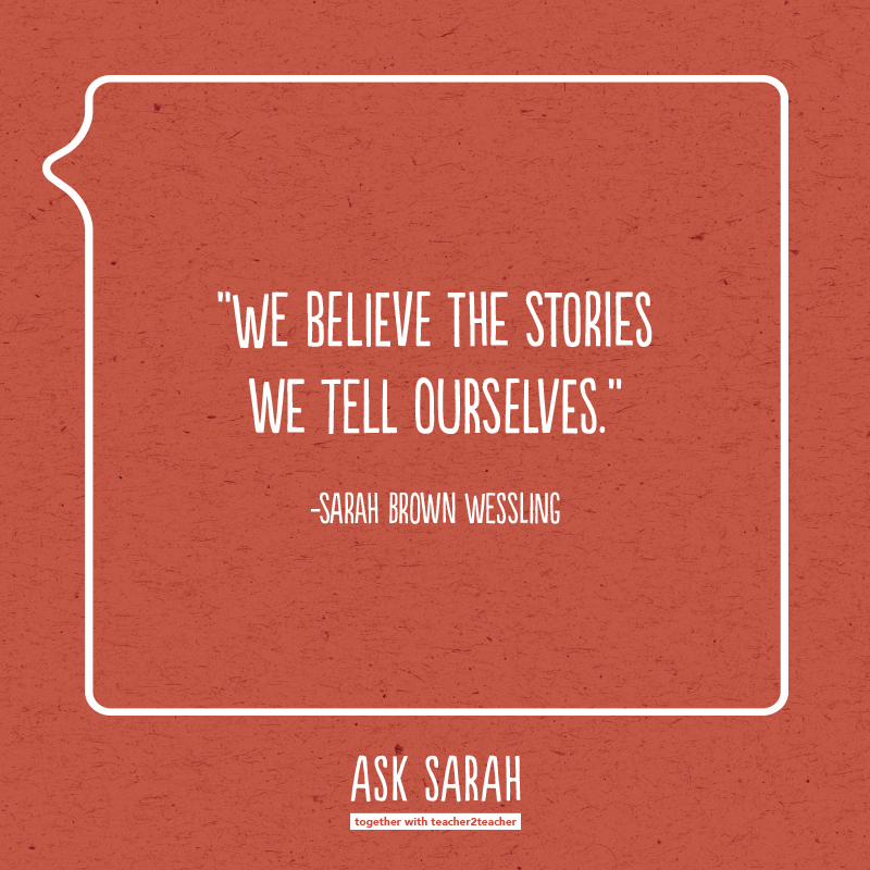 Don’t misunderstand me. This practice wasn’t like magic pixie dust that transformed our classroom into the stuff of inspirational teacher movies. No. We still struggled. Every single day. But the more I leaned into the challenge instead of evaded it, the closer we got to rewriting our story. Now, when I think about “that class,” I do it with a smile, a reverence because it’s “that class” who taught me about facing fears, it’s “that class” who taught me that every student has a story and every story matters. It’s “that class” who eventually caused me to paint on a wall in my house: “We believe the stories we tell ourselves.”