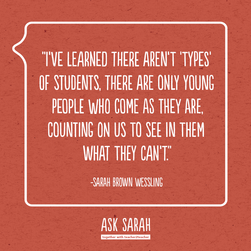 Over the course of the last 18 years, I’ve worked with so many different kinds of learners. I’ve taught underclassmen and upperclassmen, the most at-risk and the most successful. I’ve taught the unmotivated and the hyper-motivated, the ones who struggle and the ones who are lulled by ease. I’ve taught they ones who want to consume every second of my energy and the ones who are happy to fall through the cracks. I’ve learned there aren’t “types” of students, there are only young people who come as they are, counting on us to see in them what they can’t yet see in themselves.