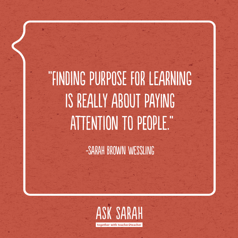 When you take on these tough components of planning and teaching — congratulations — it means you’re struggling and you know that finding purpose for learning is really about paying attention to people.