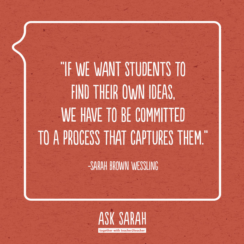 Your answer resides in what I can tell you already know: their best ideas are already inside them. I think it’s why you used the phrase “bringing out” because you recognize our writers are ready to develop their ideas, to find their voices. It’s the confrontation we must have with ourselves: if our students already have ideas, but aren’t showing them, what are we doing to inhibit them?