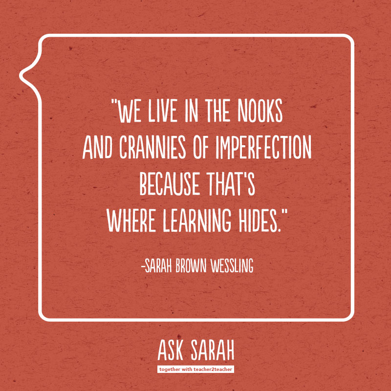 See, there is a space between the ideal classroom we imagine and the reality of what walks through our door each day. Yet, that’s where teachers live. We live in the nooks and crannies of imperfection because that’s where learning hides.