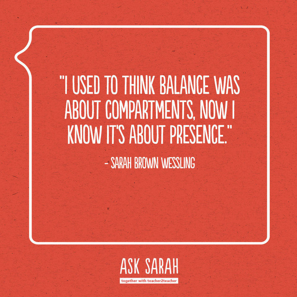 It might look like I’m balancing a life, but really, I’m choosing one. I’m writing this column and my kids are watching a movie. I’ll go play Clue with them shortly or run them to afternoon activities and those student papers will sit at my desk, ungraded. Again. I’ll pour myself into this cool community interview project my students are doing at school this week and I’ll barely stay caught up on emails. I’m not balancing anything, I’m choosing where to place my presence. I’m trying to live a teaching life that has margins instead of always writing off the page.