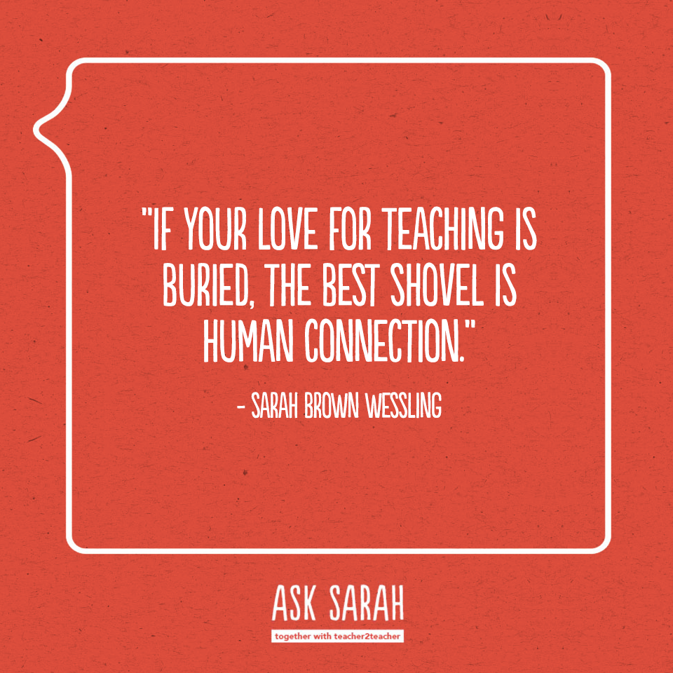 Remember, this very real struggle isn’t about one or the other: initiatives or humanness. It’s about merging the best of both into an experience where every student has the opportunity to flourish in many ways. But, if your love for teaching is buried, the best shovel is human connection.